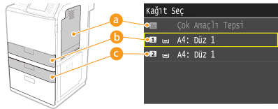 Öncelikle kağıt kaynağına yüklenen kağıdın boyutunu ve türünü belirtmeniz gerekir.
