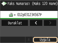 Faks numarasının sonuna bir duraklama girmek için <Duraklat> öğesine dokunun.