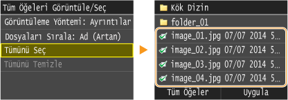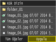<Tüm Öğeler> öğesine dokunmadan önce bir dosya seçtiyseniz, yalnızca aynı biçimde dosyaları seçebilirsiniz.