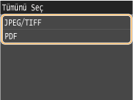 <JPEG/TIFF> veya <PDF> öğesine dokunun.