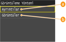 Varsayılan görüntüleme yöntemi olarak <Ayrıntılar> veya <Görüntüler> öğelerinden birini seçebilirsiniz.