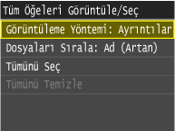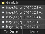 <Tarih/Saat (Artan)> veya <Tarih/Saat (Azalan)> öğesine dokunduğunuzda, dosyaların değişiklik tarihlerine ve saatine göre dosyalar sıralanır.