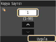 veya sayı tuşlarını kullanarak bir miktar girin ve <Uygula> öğesine dokunun.