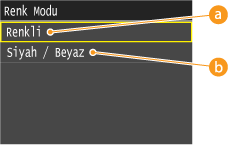 <Renk Modu> seçeneği <Renkli> olarak ayarlandığında bu ayar geçersizdir.