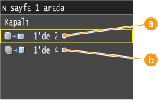İki veya dört resmi tek bir yaprakta yazdırabilirsiniz. <1'de 2> veya <1'de 4> öğesine dokunun.