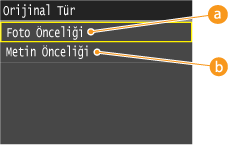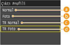 <Çıktı Profili> için <TR Normal> veya <TR Foto> seçildiğinde