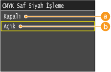 <RGB Kaynak Profili> için <Hiçbiri> seçilirse, RGB Saf Siyah İşlem ayarı uygulanmaz.