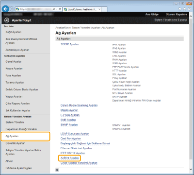 AirPrint, [AirPrint Kullan] onay kutusunun işaretlenmesiyle etkinleştirildiğinde <HTTP Kullan> ve <mDNS Ayarları> (IPv4) ayarları da etkinleşir.