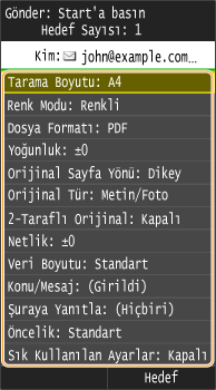 Adres Defteri gibi diğer yöntemleri kullanarak hedef belirtmeyi kolaylaştırmak için Hedef Belirtme (E-posta/Paylaşılan Klasör/Dosya Sunucusu) bölümüne bakın.