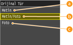 <Tarama>  Hedefleri belirtin veya USB bellek aygıtını bağlayın  <Orijinal Tür>   Belge türüne dokunun