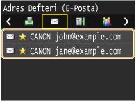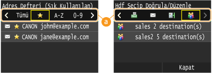 Adres Defteri, kayıtlı hedefler listesinden seçerek veya alıcı adlarını içeren hedefleri ada göre arayarak bir hedef belirtmenize olanak sağlar. Bir hedefe atanmış üç basamaklı bir sayı (kodlu arama numaraları) girerek doğrudan bir hedef de belirtebilirsiniz.