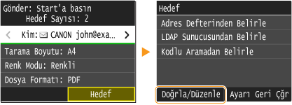 Hedef listesini görüntülemeden hızlı ve kolay şekilde hedefleri silmek istiyorsanız1. adımda <Doğrla/Düzenle> öğesine dokunmadan önce belirttiğiniz hedefler arasında geçiş yapmak için