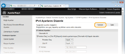 IPv4'tekiyle aynı mDNS adını kullanmak için onay kutusunu seçin. Farklı bir ad ayarlamak için onay kutusunu temizleyin ve [mDNS Adı] metin kutusuna mDNS adını girin. |