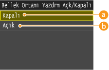 <Bellek Ortamı Yazdırma Açık/Kapalı> öğesine dokunun.