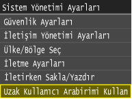 Makine ayarları, bir bilgisayardaki Web tarayıcısı kullanılarak belirtilebildiğinden, Uzak Kullanıcı Arabirimi kullanışlıdır. Uzak Kullanıcı Arabirimi'ni kullanmak için makine, ağ üzerinden bir bilgisayara bağlanmalıdır. Makine, USB aracılığıyla bir bilgisayara bağlıysa veya Uzak Kullanıcı Arabirimi'ni kullanmanız gerekmiyorsa, makinenizin kötü niyetli üçüncü taraflarca ağ üzerinden uzaktan denetlenmesi riskini azaltmak için Uzak Kullanıcı Arabirimi'ni devre dışı bırakmak isteyebilirsiniz.