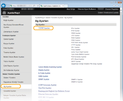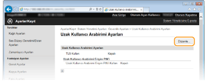 [Uzak Kullanıcı Arabirimi Ayarları] öğesini tıklatın.![]() |