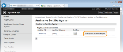 İşletim panelini kullanmaTLS şifreli iletişimi <Menü> tuşuna basarak etkinleştirebilir veya devre dışı bırakabilirsiniz. TLS Kullan
