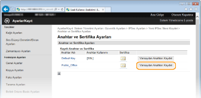 Kullanmak istediğiniz bir anahtar çiftinin sağındaki [Varsayılan Anahtarı Kaydet] öğesini tıklatın.