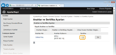 [Anahtar ve Sertifika Ayarları] (anahtar çiftleri için) veya [CA Sertifikası Ayarları] (CA sertifikaları için) seçeneğini tıklatın.