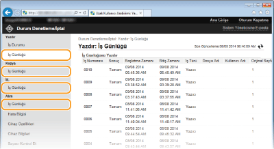 Ayrıntılı bilgileri görüntülemek için duraklatılan belgelerde ve güvenli belgelerde [İş Numarası] öğesini tıklatın. Yazdırılan belgenin kullanıcı adını ve sayfa sayısını denetleyebilirsiniz.