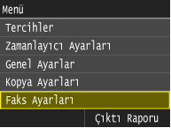 Faks ile ilgili tüm ayarlar, kısa açıklamalarla birlikte listelenir. Varsayılan ayarlar kama ile işaretlenmiştir (