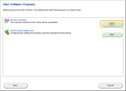 [Manual Uninstaller] (Kılavuz Kaldırıcı) için [Start] (Başlat) öğesini tıklatın.
