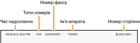 Зареєструйте номер факсу та ім’я апарата. Ця інформація друкується у верхній частині кожної сторінки, що надсилається з апарата.