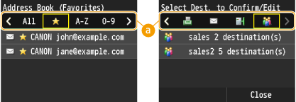Адресна книга дає змогу вказати адресата, вибравши його зі списку зареєстрованих адресатів або скориставшись пошуком по імені адресата серед імен одержувачів. Можна також прямо зазначити адресата шляхом введення тризначного номера (закодованого телефонного номера), призначеного адресату.