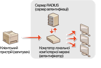IEEE 802.1X – це стандарт і механізм блокування неавторизованого доступу до мережі шляхом колективного керування інформацією про автентифікацію користувачів. Якщо пристрій намагається підключитися до мережі 802.1X, пристрій має пройти автентифікацію користувача, щоб довести, що підключення створено авторизованим користувачем. Інформація про автентифікацію надсилається до сервера RADIUS, який її перевіряє та дозволяє зв’язок із мережею або відхиляє його залежно від результату автентифікації. Якщо автентифікація не вдається, перемикач бездротової локальної мережі (або точка доступу) блокує доступ зовні мережі. Апарат може підключитися до мережі 802.1X як клієнтський пристрій.