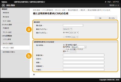 本機で自己生成した証明書は認証局の署名がないため、通信相手によっては通信エラーとなってしまうことがあります。認証局の署名が付いた証明書を発行してもらうためには、証明書署名要求(CSR:Certificate Signing Request)のデータが必要で、CSRは管理者がリモートUIから生成することができます。証明書が発行されたら、CSRを生成した鍵に証明書を登録してください。