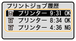 <ジョブ履歴表示のON/OFF>が<OFF>に設定されていると、印刷履歴は確認できません。 <ジョブ履歴表示のON/OFF> |