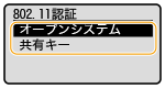 2 | 認証方式を選ぶ ![]() <オープンシステム> 一般に「オープン認証」と呼ばれる認証方式です。 <共有キー> パスワードとしてWEPキーを使用する認証方式です。 ![]() <オープンシステム>を選んだ場合 無線LANルーターが共有キー認証を使用している場合は接続時に認証エラーが生じますが、本機の設定は自動的に<共有キー>に変更され再接続が試みられます。 |