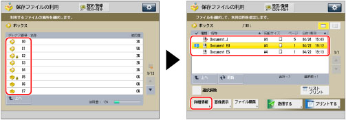 (メインメニュー)→[保存ファイルの利用]→[ボックス]を押す