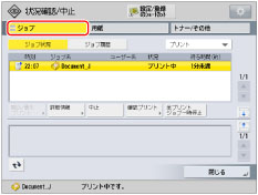 [ジョブ状況]を押す→ドロップダウンリストから[プリント]を選択