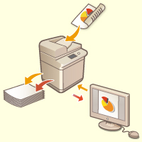 操作パネルの使いかたや、原稿と用紙のセット方法など、各機能をお使いになるうえで共通する基本的なことがらについて説明しています。また、メインの操作となるタッチパネルディスプレーの見かたや使いかたについても説明しています。