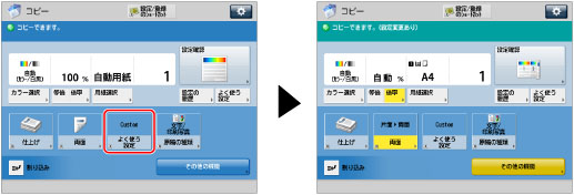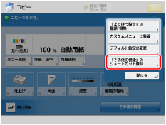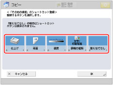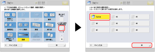 あらかじめ登録しておいたよく使う設定ボタンをショートカットに割り当てます。コピー基本画面から確認画面を表示することなく、直接設定を呼び出すことが可能になります。