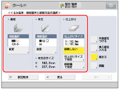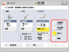 [設定取消]を押すと、ジョブのくるみ製本の設定が解除されて、再度設定することができなくなります。 |