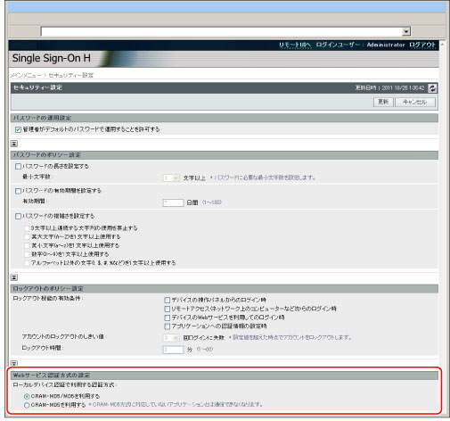 SSO-Hでは、Webサービス認証システムで提供しているローカルデバイス認証の認証方式を設定できます。