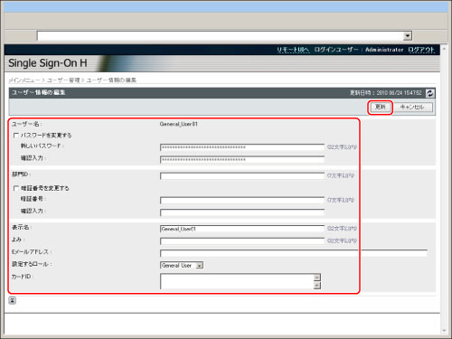 システムアドミニストレーター(Administrator)のみ、ユーザー情報を編集できます。 |
