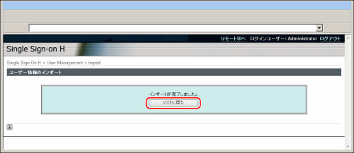 SDLフォーマット | SSO-Hのローカルデバイス認証で使用できるファイル形式で作成されたユーザー情報をインポートします。ファイルの拡張子は「ldif」です。 |