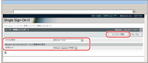NetSpot Accountant 4.xフォーマット | NetSpot Accountant 4.x/imageWARE Accounting Manager専用のフォーマットで作成されたユーザー情報をエクスポートします。ファイルの拡張子は「csv」です。 |