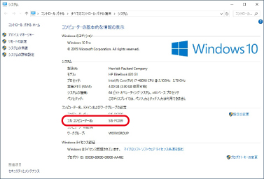 [フル コンピューター名]を確認→ウインドウを閉じる