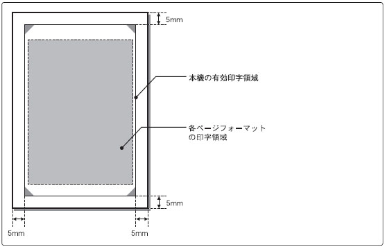 ![]() | カット紙に対応したページフォーマットは、第1文字目がiRシリーズ/imagePRESSシリーズ/imageRUNNER ADVANCEシリーズの有効印字領域の左上端とほぼ同じ位置に印字されます。 |