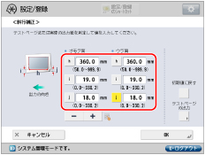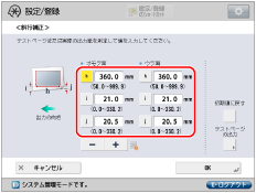 画像位置のばらつきが大きい場合は、テストページを複数枚出力して実測値の平均をとるなどすると、調整精度が上がる場合があります。 |