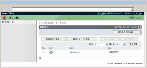 リモートUIから、宛先表への宛先の登録や編集、宛先表の名称変更などができます。リモートUIで管理できる宛先の種類には次のものがあります。