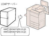 LDAP(Lightweight Directory Access Protocol)サーバーを使って、ネットワーク上のディレクトリーサービスから宛先を検索できます。検索した宛先は送信先として指定したり、アドレス帳に登録したりできます。
