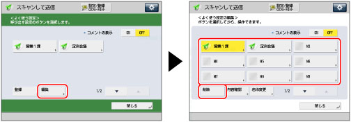 (メインメニュー)→[スキャンして送信]→[よく使う設定]を押す