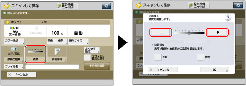 原稿の濃度に合わせて、読み込む濃度を調節できます。