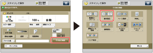 製本仕上げでプリントする場合は、このモードを使って読み込みます。プリントするときは、製本モードを設定してプリントしてください。(→