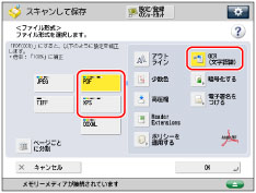 [OCR(文字認識)]を設定したとき、場合によっては正しくOCR処理されないこともあります。(→正しくOCR(文字認識)処理されないときには) |